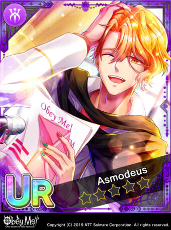 Asmo finds him annoying, and is always safeguarding his stuff, since Mammon tends to steal from him most often (at least, it feels like that sometimes). However, Mammon's a great party and shopping companion! He's happy to go on any outings together.